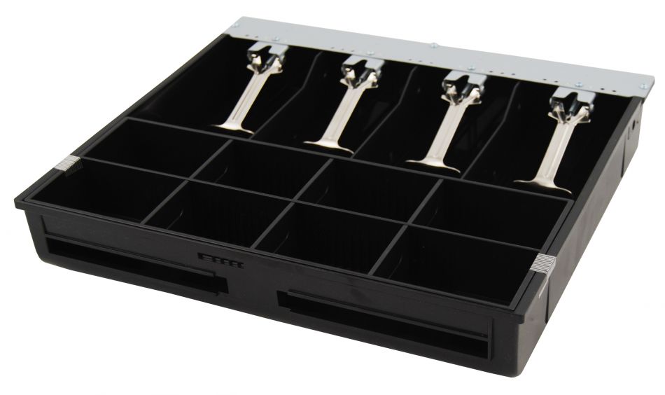 This plastic constructed money tray with metal note clips is ideal for storeing coins and notes in a organised manor.